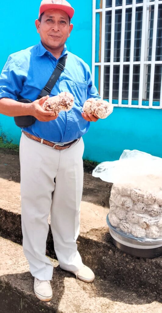 Hace diez años, cuando los trabajos de construcción comenzaron a escasear, Don Santos tomó una decisión que le cambió la vida. Guardó sus herramientas de albañil y comenzó a producir turrones: dulcitos de trigo con miel de caña, parte de la tradición mestiza de Nicaragua, ese sabor de infancia que muchos llevan en el corazón.